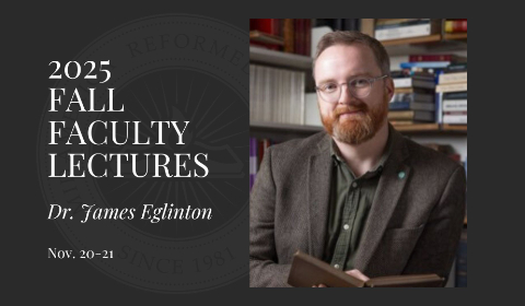 On November 20-21, 2025, Dr. James Eglinton, Meldrum Senior Lecturer in Reformed Theology at New College, part of the School of Divinity at the University of Edinburgh, Scotland, will join us on campus to lead us in a series of lectures on the theme of knowing God, and archetype and ectype in Reformed Theology.
